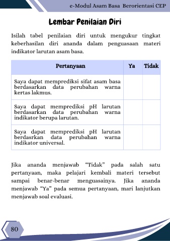 Isilah tabel penilaian diri untuk mengukur tingkat