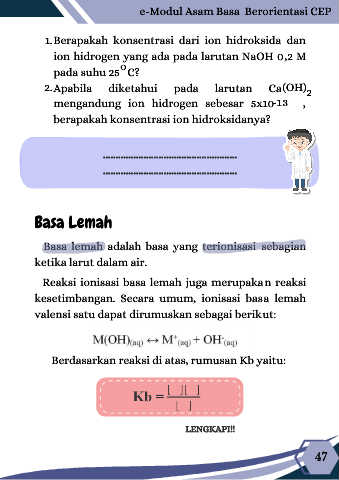 kesetimbangan. Secara umum, ionisasi basa lemah
