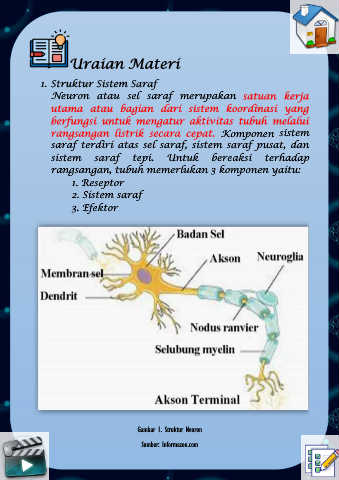 saraf terdiri atas sel saraf, sistem saraf pusat, dan