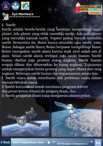 alam. Selain satelit alami, terdapat juga satelit buatan. Satelit