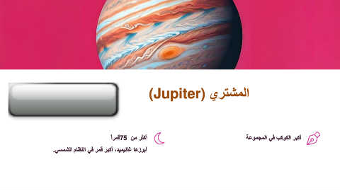 المشتري )(Jupiter أكثر من 75لمرا أكبر الكوكب فً المجموعة أبرزها غانٌمٌد ،أكبر لمر فً النظام الشمسً.
