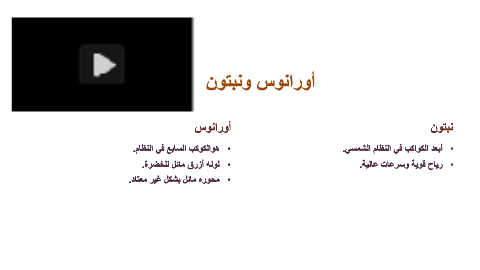 أورانوس ونبتون أورانوس نبتون • هوالكوكب السابع فً النظام. • أبعد الكواكب فً النظام الشمسً. • لونه أزرق مائل للخضرة. • رٌاح لوٌة وسرعات عالٌة. • محوره مائل بشكل غٌر معتاد.