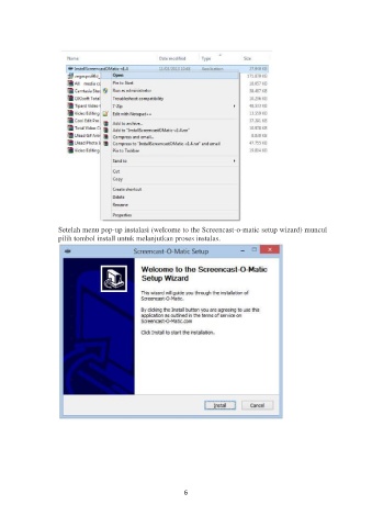Setelah menu pop-up instalasi (welcome to the Screencast-o-matic setup wizard) muncul pilih tombol install untuk melanjutkan proses instalas. 6