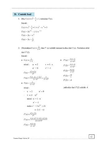 misal : u = 2 v = 1 - x f”(2) = ( − )
