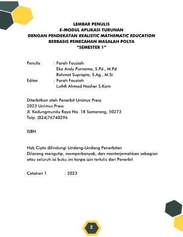 Page 2 - E-MODUL APLIKASI TURUNAN Dengan Pendekatan Realistic Mathematic Education Berbasis Pemecahan Masalah Polya
