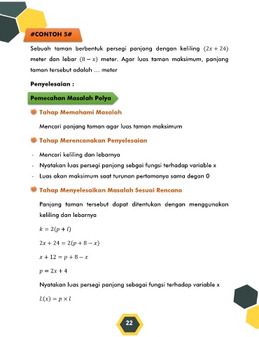 Page 22 - E-MODUL APLIKASI TURUNAN Dengan Pendekatan Realistic Mathematic Education Berbasis Pemecahan Masalah Polya
