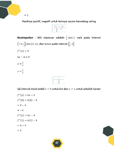 Kesimpulan : titik stasioner adalah 1, naik pada interval