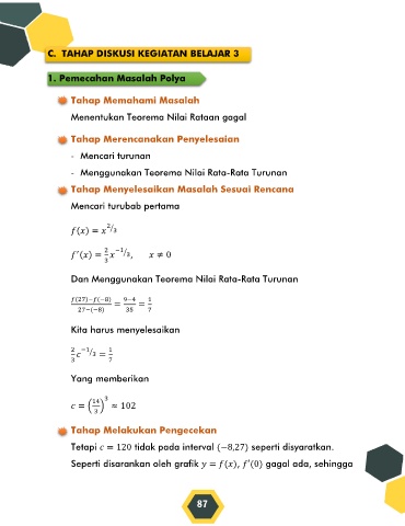 Page 87 - E-MODUL APLIKASI TURUNAN Dengan Pendekatan Realistic Mathematic Education Berbasis Pemecahan Masalah Polya
