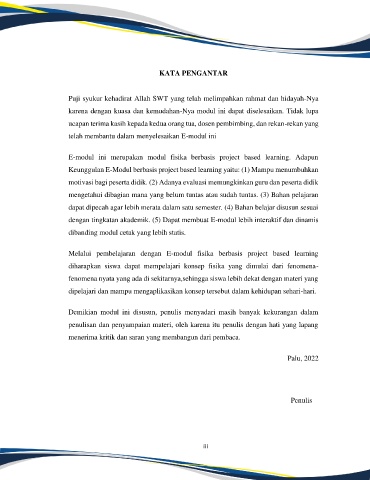 E-modul ini merupakan modul fisika berbasis project based learning. Adapun