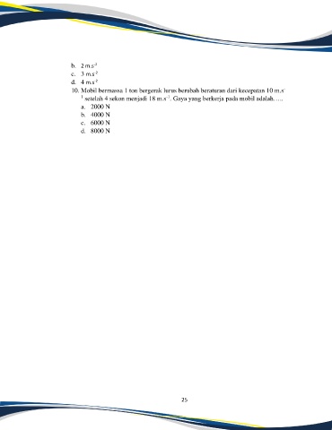 1 setelah 4 sekon menjadi 18 m.s . Gaya yang berkerja pada mobil adalah…..