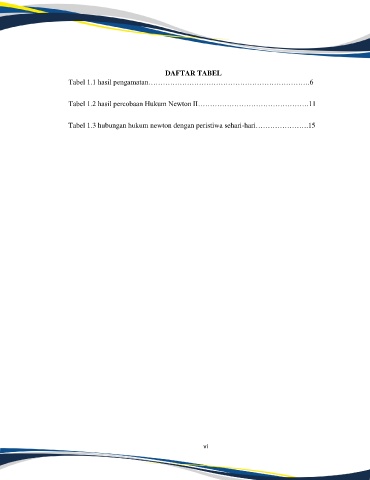 Tabel 1.3 hubungan hukum newton dengan peristiwa sehari-hari………………….15