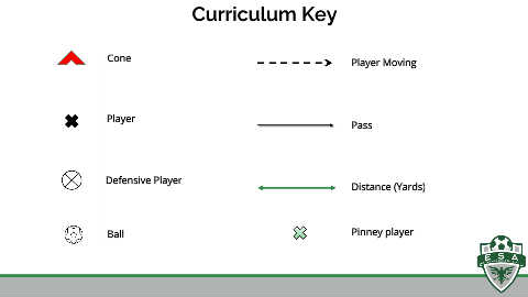Curriculum Key Cone Player Moving Player Pass Defensive Player Distance (Yards) Ball Pinney player