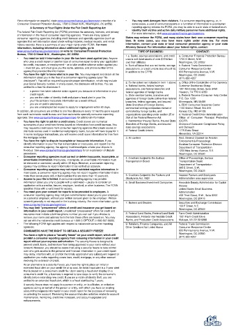 history records). Here is a summary of your major rights under FCRA. For more information, contact your state or local consumer protection agency or your state