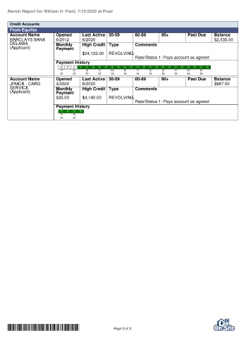 Rental Report for William H. Field, 7/15/2020 at Pixel