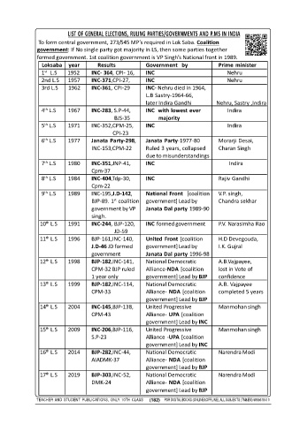 LIST OF GENERAL ELECTIONS, RULING PARTIES/GOVERNMENTS AND P.MS IN INDIA