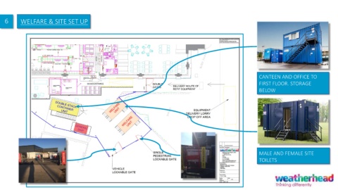 6 WELF PHASE 6ARE & SITE SET UP CANTEEN AND OFFICE TO FIRST FLOOR. STORAGE BELOW MALE AND FEMALE SITE TOILETS