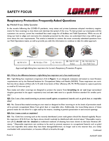 customers we service, Loram has mandated face mask usage for all facilities and Field Operations. While we are all