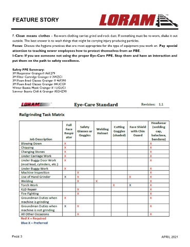 F. Clean means clothes - Re-worn clothing carries grind and rock dust. If something must be re-worn, shake it out