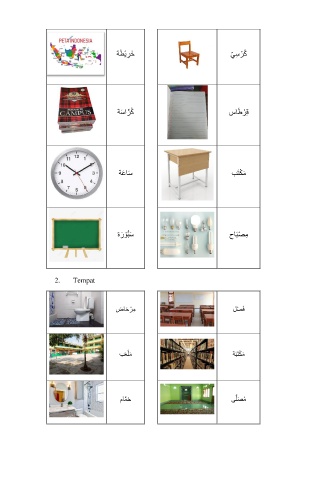 َ ةطْيرَخ يِس ْ رُك ِ َ ةَسا َّ رُك ساط ْ رِق ْ ةَعاَس بَتكم َ ةر ْ وُْبَس حاَبْصِم َ 2. Tempat ضاَح ْ رِم لْصَف ْ بعلم ةَبَتْكم َ َ َ َّ ماَّمَح ىلَصُم