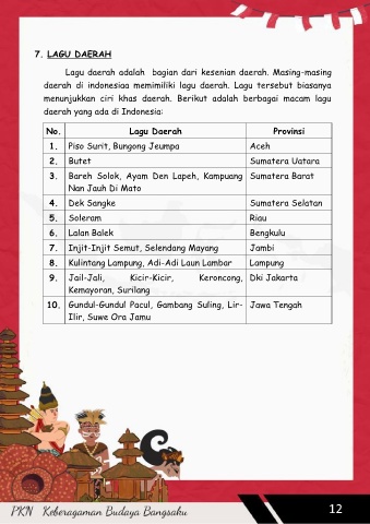 menunjukkan ciri khas daerah. Berikut adalah berbagai macam lagu