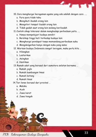 10. Cara menghargai keragaman agama yang ada adalah dengan cara …..