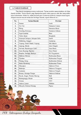 Adapun macam-macam tarian dari berbagai daerah, seperti dibawah ini ;