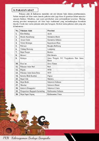 daerah. Corak dan warna pakaian adat pun beragam. Berikut nama pakaian adat yang ada