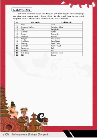 menghibur. Berikut ini nama-nama alat music tradisional di Indonesia :