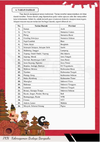 Adapun macam-macam tarian dari berbagai daerah, seperti dibawah ini ;
