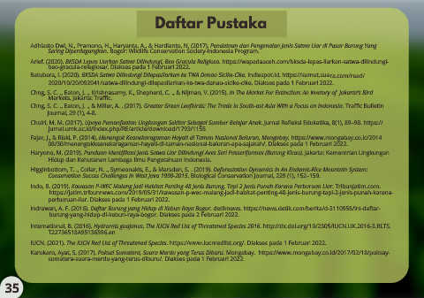 Adhiasto Dwi, N., Pramono, H., Haryanta, A., & Hardianto, N. (2017). Pendataan dan Pengenalan Jenis Satwa Liar di Pasar Burung Yang