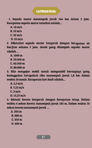 1. Sepeda motor menempuh jarak 144 km dalam 2 jam.