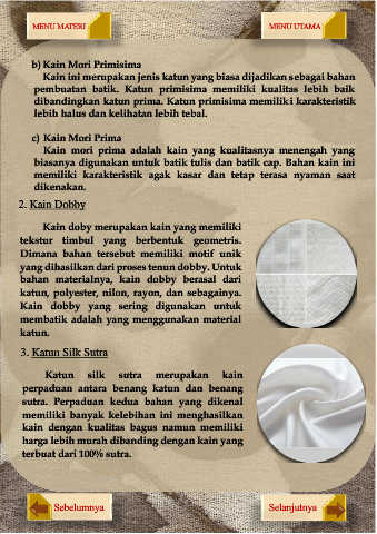 biasanya digunakan untuk batik tulis dan batik cap. Bahan kain ini