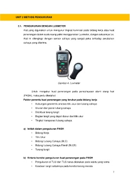 penerangan dalam suatu ruang yakni menggunakan Luxmeter, dengan satuannya lux.
