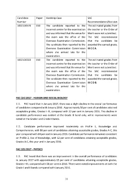 year compared with 84 per cent in January 2016. Candidate performance remained consistent