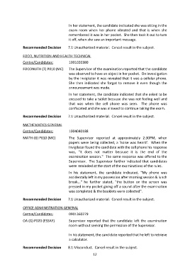 FOODNUTH (T) P010 (MC) The Supervisor of the examination reported that the candidate