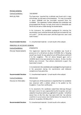 PHYS (G) P020 The Supervisor reported the candidate was found with a copy