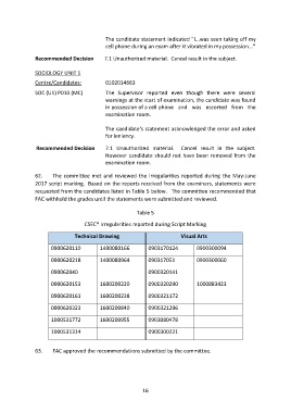 2017 script marking.  Based on the reports received from the examiners, statements were