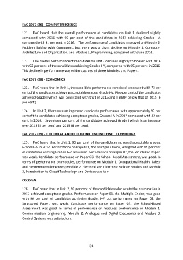 121. FAC heard that the overall performance of candidates on Unit 1 declined slightly