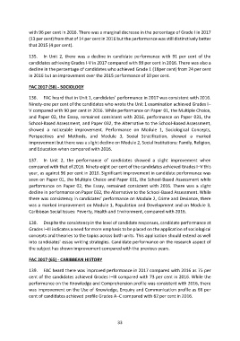 136. FAC heard that in Unit 1, candidates’ performance in 2017 was consistent with 2016.