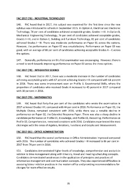 146. FAC heard that in 2017, this subject was examined for the first time since the new