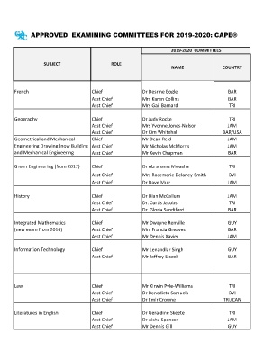 APPROVED EXAMINING COMMITTEES FOR 2019-2020: CAPE®