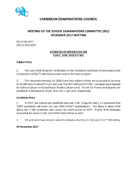 2. SEC and Council are invited to note the estimates of entries for the June CCSLC® 2018 sitting.
