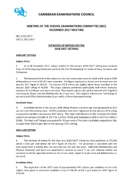 1. As at 08 November 2017, subject entries for the January 2018 CSEC® sitting were received