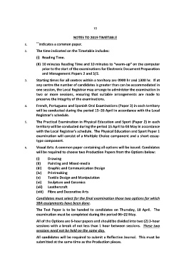 NOTES TO 2019 TIMETABLE