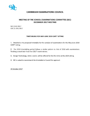 TIMETABLING FOR MAY-JUNE 2019 CAPE® SITTING