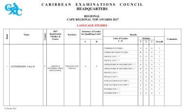 Rank Name Gender Registration Territory for Qualifying Units* Units of Grades Results Modules Comments