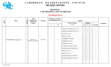 Rank Name Gender Registration Territory for Qualifying Units* Units of Grades Results Modules Comments