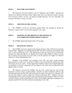 Council (CXC). Members were informed that for 2017 the CXC would focus on producing valid