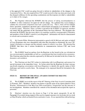 the changed syllabuses for the upcoming examinations and the response provided to stakeholders