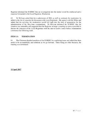 63. Dr McLean asked that the e-submission of SBA as well as contracts for moderators be